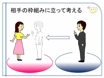 ちょっと自分の枠組みを横に置いておいて、相手の枠組みに立って(相手の気持ちに立って)考えてから、いろいろと努力したり実行しないといけないんですね。