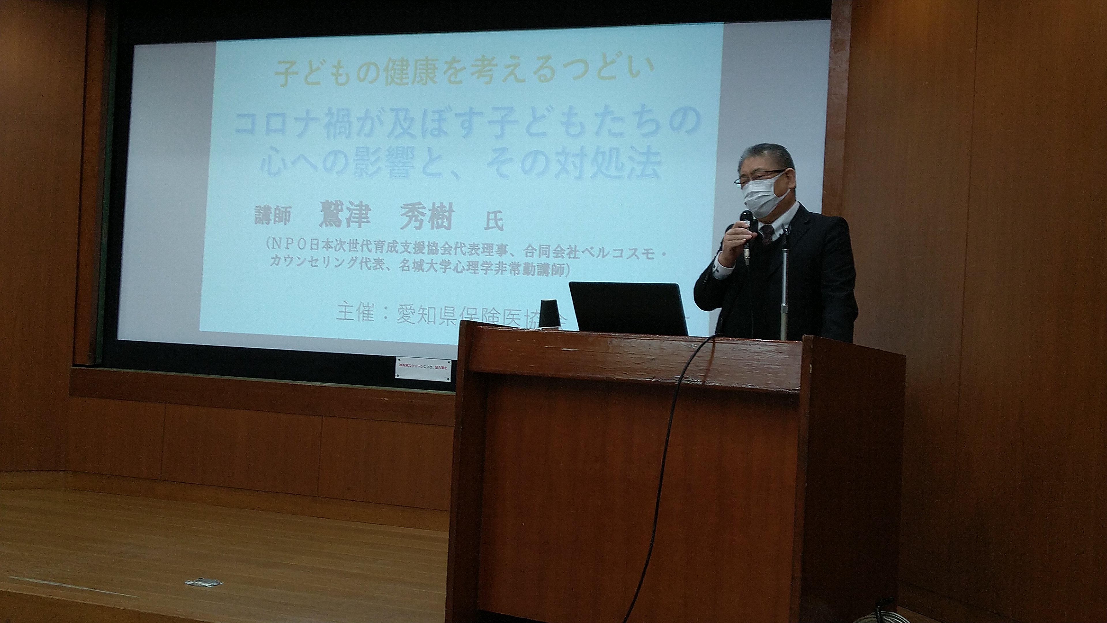 ただ、担当する講師は当団体に一任させていただいておりますのでご了承ください(写真は愛知県保険医会主催のセミナーで当協会の鷲津理事が講演)。